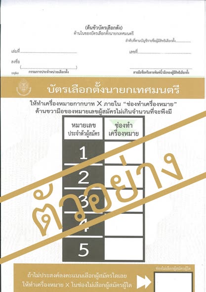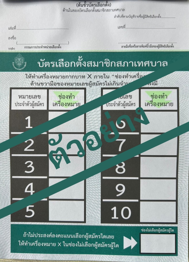 ตัวอย่างบัตรเลือกตั้งนายกเทศมนตรีตำบลสันกลาง และสมาชิกสภาเทศบาลตำบลสันกลาง เขตเลือกตั้งที่ 2 ในวันอาทิตย์ที่ 30 พฤศจิกายน 2568