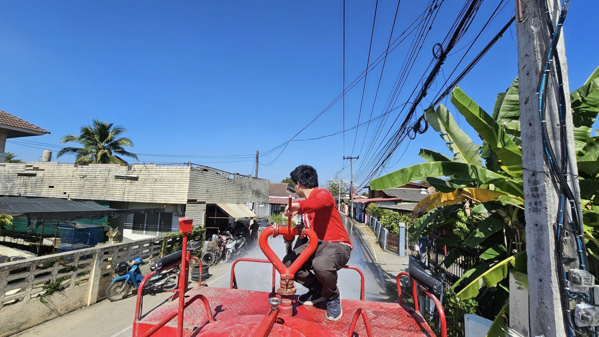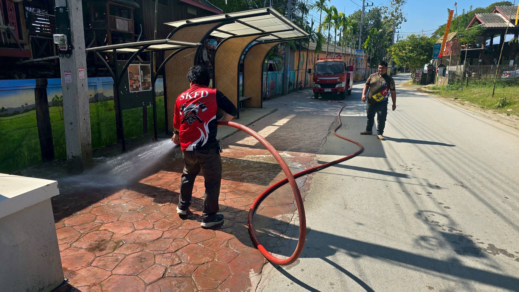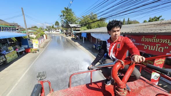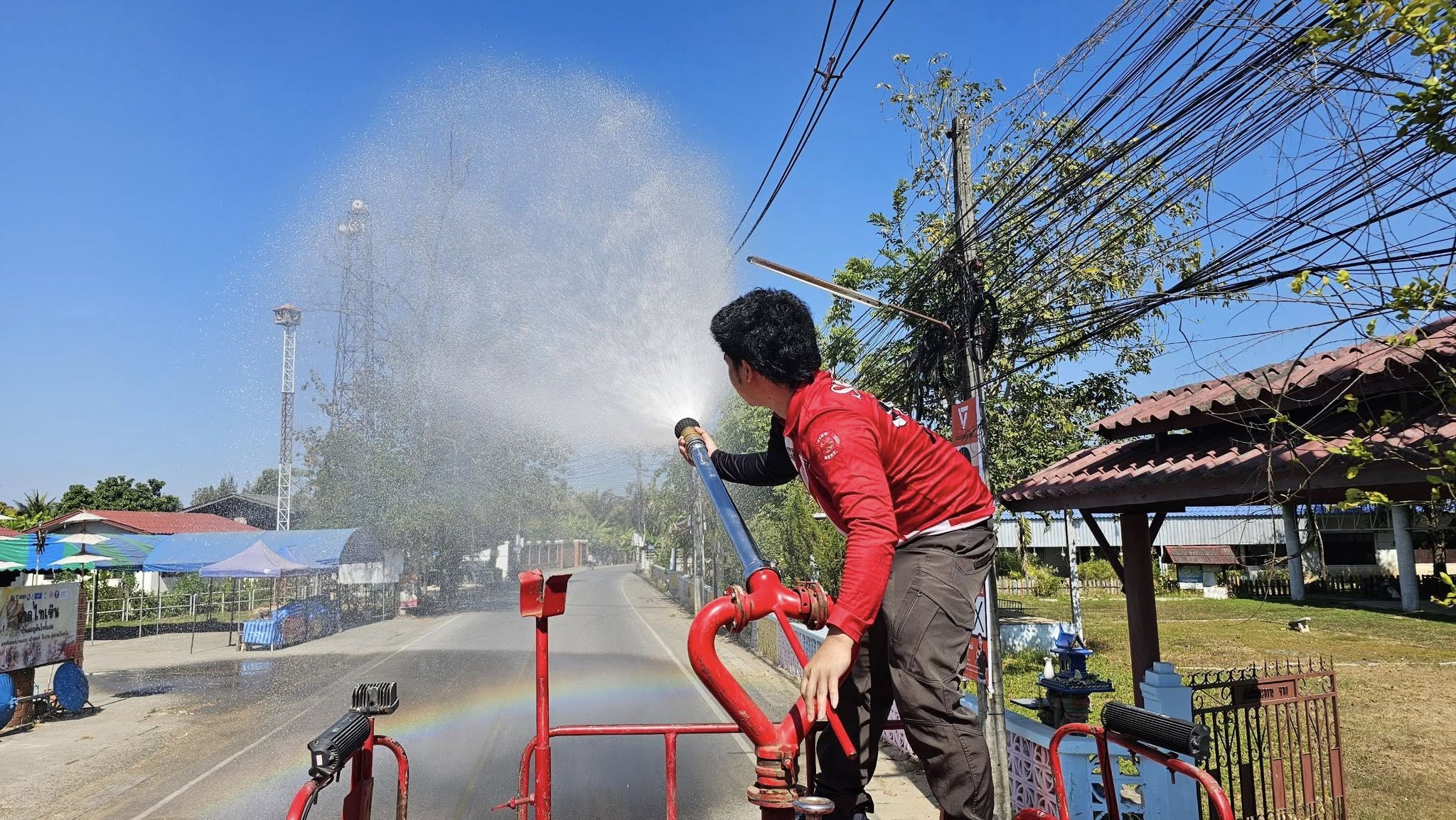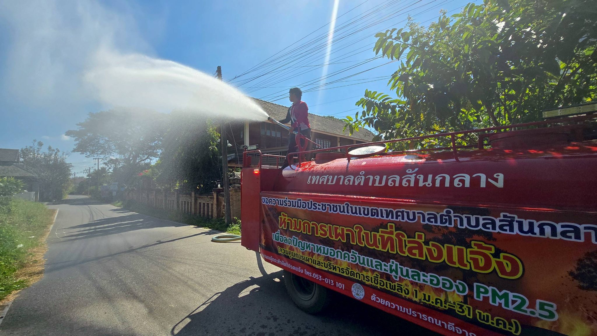 ✳️ในวันพฤหัสบดีที่ 8 มกราคม 2569 เทศบาลตำบลสันกลาง โดย นายศุภโชค ร้องหาญแก้ว นายกเทศมนตรีตำบลสันกลาง มอบหมายให้เจ้าหน้าที่งานป้องกันและบรรเทาสาธารณภัย ดำเนินการนำรถฉีดน้ำพ่นละอองฝอย บริเวณถนนบ้านมอญหมู่ที่ 1 เพื่อลดปริมาณฝุ่นละออง PM 2.5 และเพิ่มความชื้นในอากาศ ช่วยเหลือและบรรเทาความเดือดร้อนที่ส่งผลกระทบต่อสุขภาพของประชาชนชาวสันกลาง พร้อมกันนี้ ได้ดำเนินการฉีดล้างบริเวณลานในวัดและข้างวัดสีมาราม ม.2 ไปด้วยพร้อมกัน