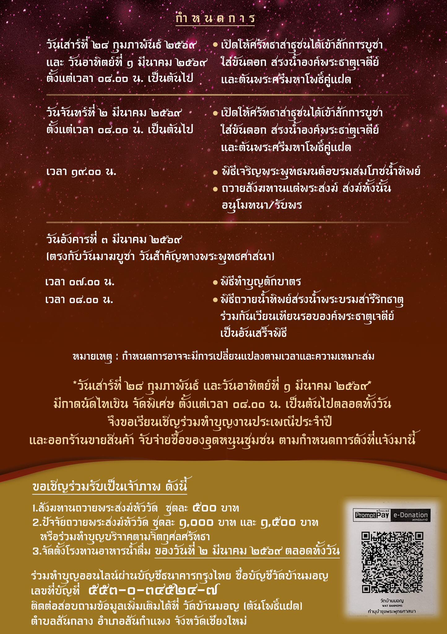 ✨✨ขอเชิญร่วมงานประเพณีสรงน้ำ บูชาพระธาตุ สักการะต้นพระศรีมหาโพธิ์คู่แฝด ประจำปี 2569 ณ วัดบ้านมอญ ในวันเสาร์ที่ 28 กุมภาพันธ์ ถึง วันที่ 3 มีนาคม 2569