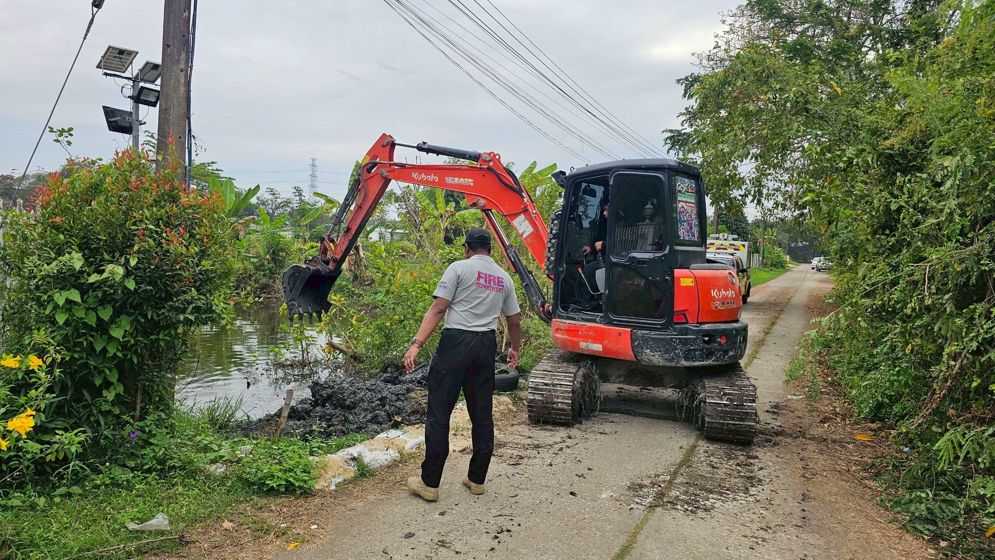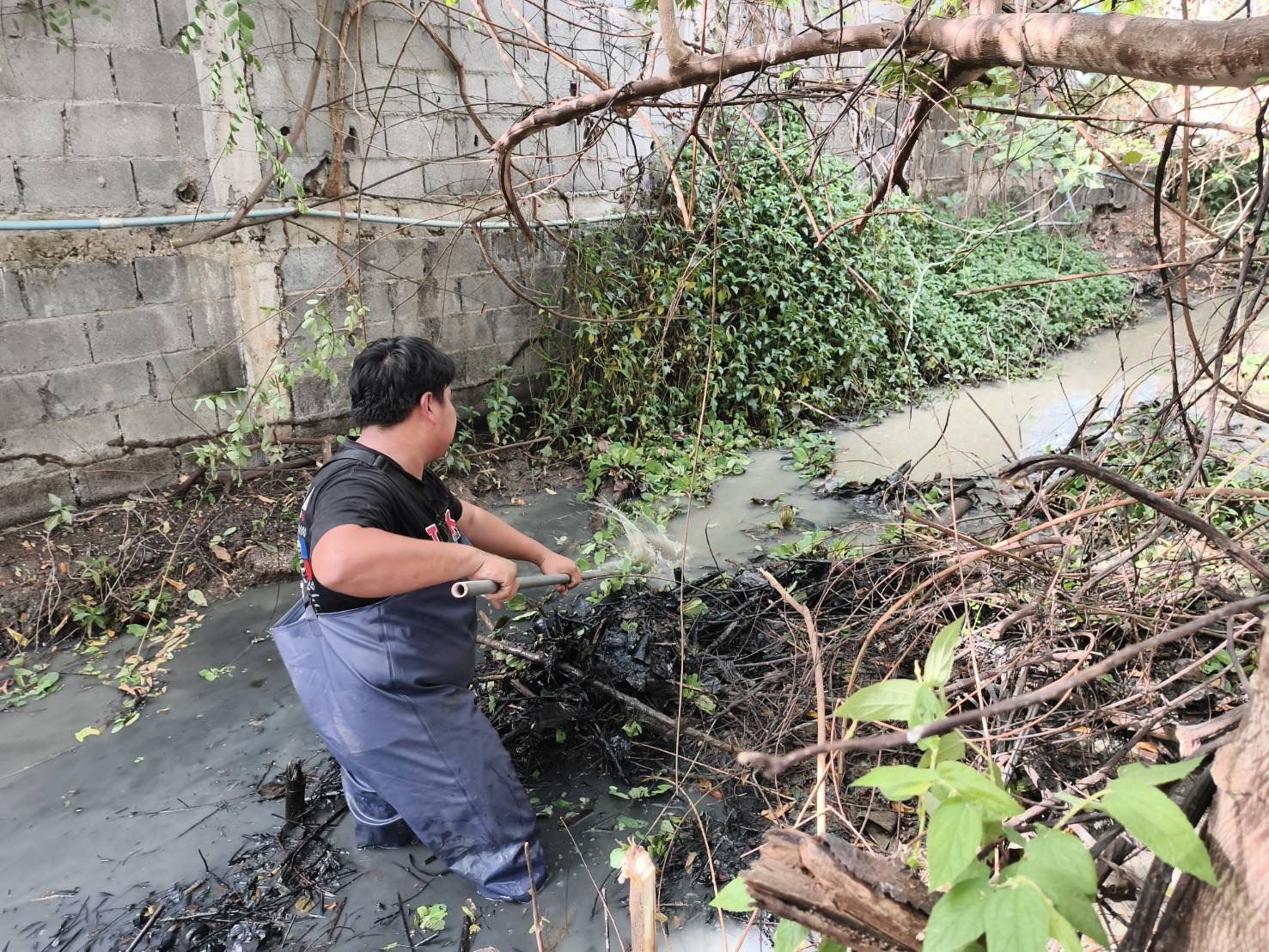 สืบเนื่องจากได้รับแจ้งว่ามีน้ำมันไหลเข้าลำเหมืองในหมู่บ้านสันติ ส่งผลให้ทางน้ำอุดตันและน้ำเอ่อล้นท่วมถนนภายในหมู่บ้าน เทศบาลฯ จึงเร่งดำเนินการแก้ไขปัญหา เพื่อบรรเทาความเดือดร้อนของประชาชน ป้องกันผลกระทบด้านสิ่งแวดล้อมในพื้นที่ และให้การระบายน้ำเป็นปกติและเกิดความปลอดภัยแก่ประชาชนต่อไป