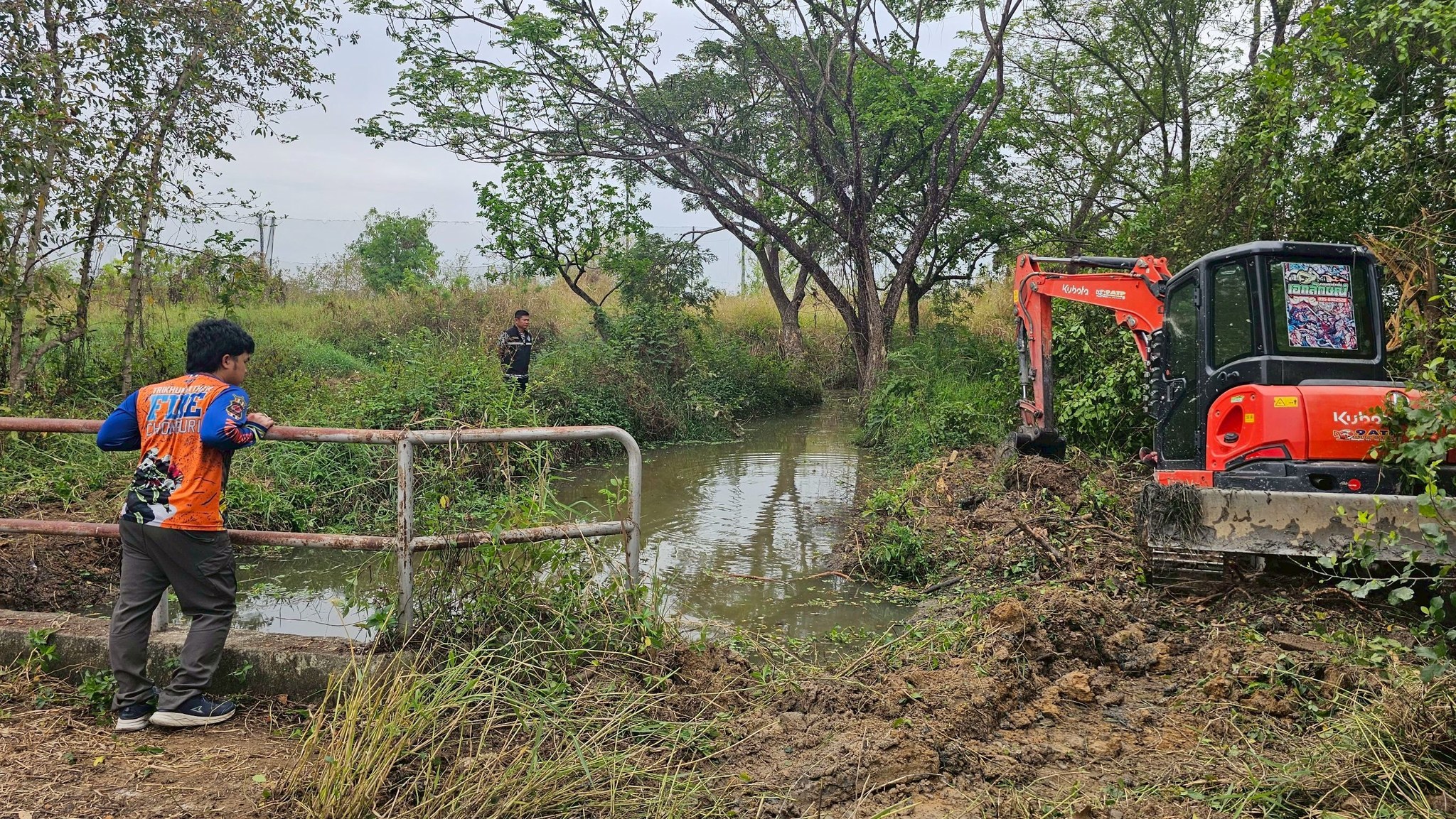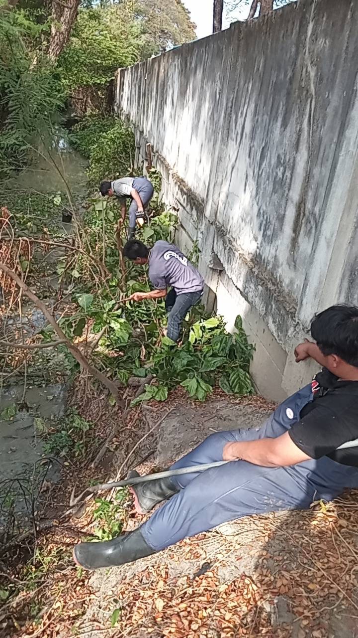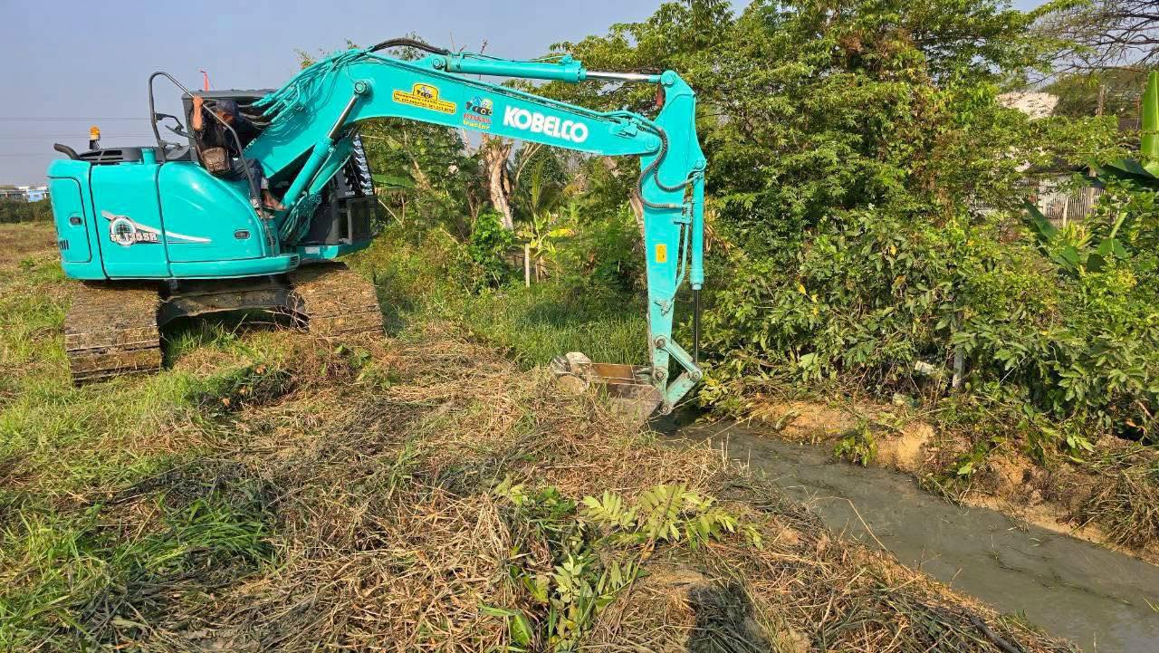 เทศบาลตำบลสันกลางเร่งกำจัดวัชพืชในลำเหมือง แก้ไขปัญหาน้ำล้นท่วมถนน บริเวณหมู่บ้านสันติ